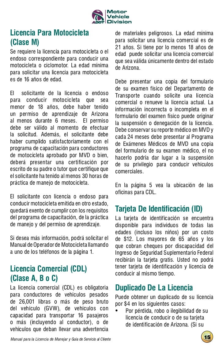 Práctica de manejo supervisada para la licencia gradual de conducir de wisconsin los padres deben certificar que su adolescente haya obtenido mínimo de 30 horas de manejo bajo supervisión, de las cuales 10 horas deben ser realizadas en la noche. Después de los primeros tres meses, los conductores pueden operar un vehículo desde las 6 de la mañana hasta las 10 de la noche con un conductor con licencia, de 21 años de edad o mayor que ocupe el asiento delantero. Manual para sacar la licencia de aprendizaje es uno de los libros de ccc revisados aquí. Cumplir 18 años, tener licencia de conducir, y tener endoso del secretario para conducir motocicletas es ilegal conducir motocicletas bajo las siguientes condiciones agarrado o unido a otro vehículo en zona de rodaje, entre carriles de tránsito, líneas adyacentes o hileras de vehículos, o por el mismo carril de un vehículo a ser pasado Manual para sacar la licencia de aprendizaje.